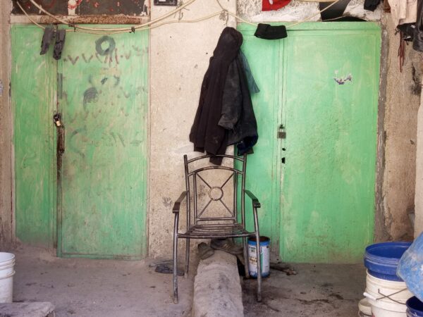 O Tawfiq foi nos guiando por entre as casas e comentou, em tom de brincadeira, que todas as organizações de direitos humanos deveriam ir até lá para registrar as casas. Depois, como quem conta vantagem, ele comentou que conseguiu sair dessas casas há pouco tempo e conseguiu se mudar para um quarto no andar de cima com vista para a rua.
